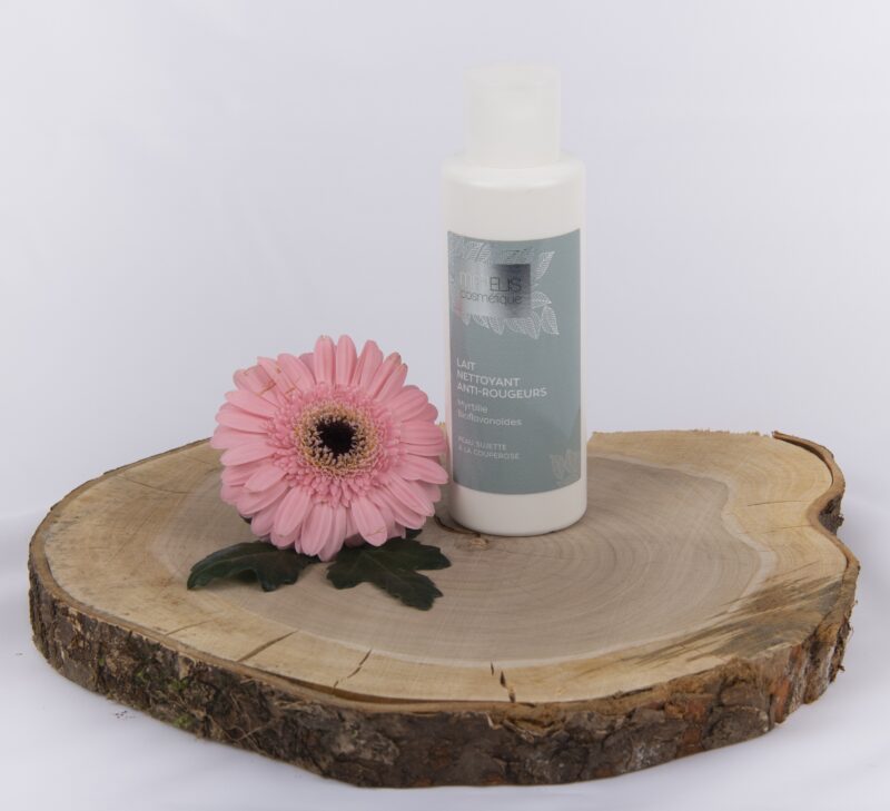 Lait nettoyant anti rougeur : Composé de myrtille et de bioflavonoïde, il nettoie et élimine les résidus de saleté et de maquillage notamment sur les peaux sujettes à la couperose, sensibles et fragiles. Il exerce une action apaisante et laisse la peau douce et hydratée. A appliquer du bout des doigts ou à l’aide d’un coton sur le visage et le cou. Rincer les éventuelles traces de produit à l’aide du tonique restitutif ou de la lotion anti rougeur.